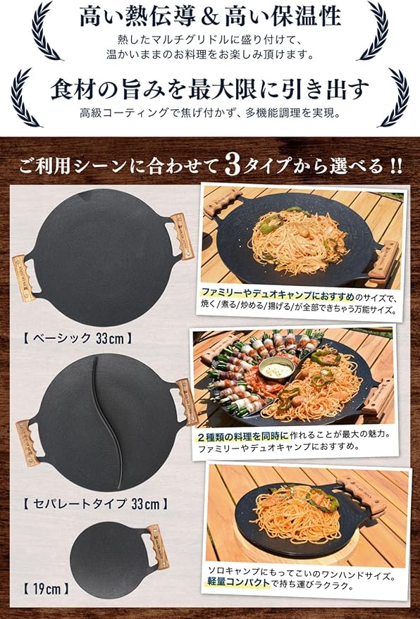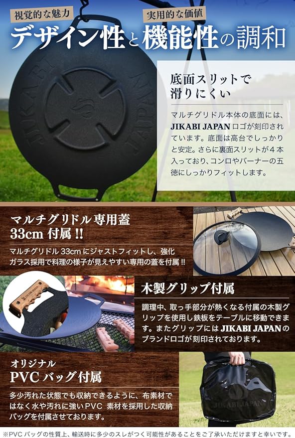 JIKABI JAPAN マルチグリドル キャンプ アウトドア 鉄板 【日本正規品】 (専用蓋付き5点セット,33cm)