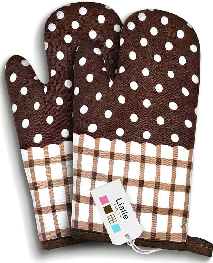 LIALLE ミトン-鍋つかみ なべつかみ 耐熱 260℃ キッチンミトン 2個セット (ブラウン)