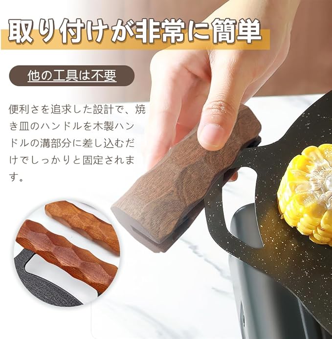 LIKENNY 鉄板取っ手 火傷防止 マルチグリドル 取っ手 厚さ4mmまでのマルチグリドルに対応可能 鉄板 キャンプ ケース 自宅 取付簡単 ウッドカバー