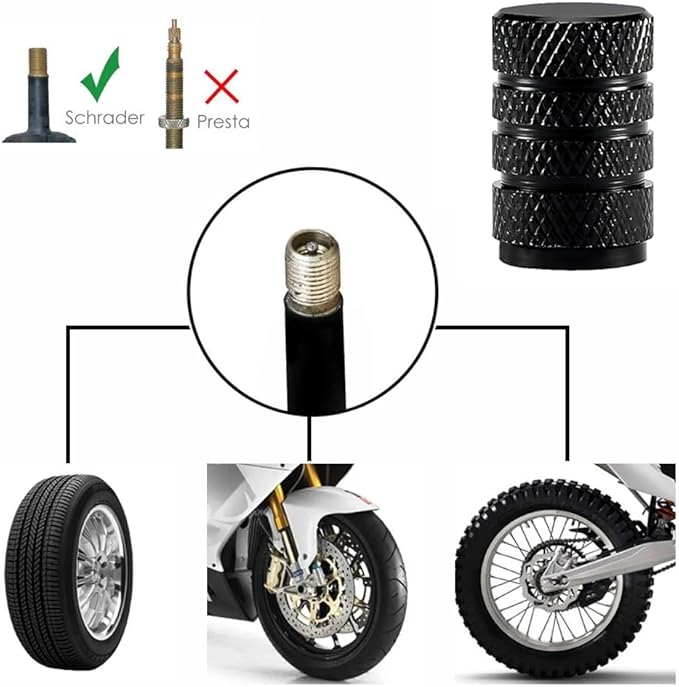 【幅広い用途】タイヤバルブキャップの直径は10.5mm、高さは17mmで、ほとんどの自動車、自転車、SUV、トラック、RV車、その他の自動車などに適合します。