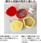 【キュートなデザイン】:りんごと星の形で、可愛らしいデザインが特徴です。10cmのぬいぐるみを入れたり、小物やアニメグッズを収納するのに適しています。