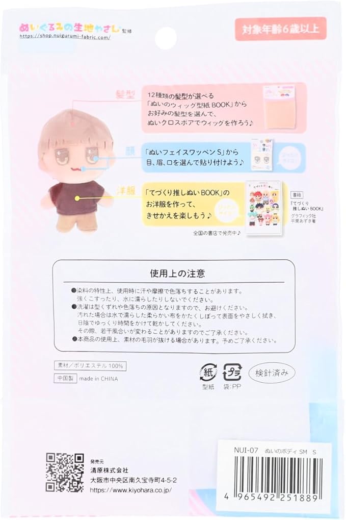 KIYOHARA 推しぬい ぬい の ボディ S 横7cm 縦11cm 厚さ4.5cm #SM さくらミルク マッシュショートのウィッグ型紙・レシピQRコード付き NUI-07