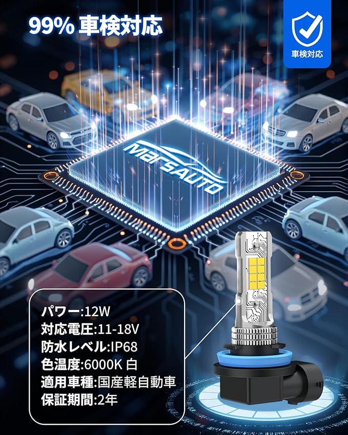 【1:1サイズ&5分で簡単取付】この LED フォグは、ハロゲンと1:1で再現されたデザインを持ち、既存の取り付け部品と交換するだけで使用できますので、複雑な配線が不要で、初心者の方でも手軽に愛車のライトをアップグレード可能です。注:内蔵抵抗により、99%の車種に対応しており、一部の車種では車の電気配線上では球切れと誤検知してしまうた、警告灯/消灯/点滅現象が解消されない可能性がございます。この場合は、追加の抵抗器が必要です。