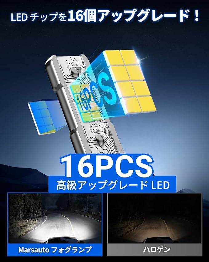 Marsauto フォグランプ H11 H8 H16 LED フォグ 爆光 10000LM 0.1s瞬間起動 バルブ ledフォグライト IP68防水 結露対策 6000K 車検対応 キャンセラー内蔵 16連 LEDチップ搭載 DC12V対応 50000時間以上寿命 ホワイト 2個セット 2年保証(G2Sシリーズ)