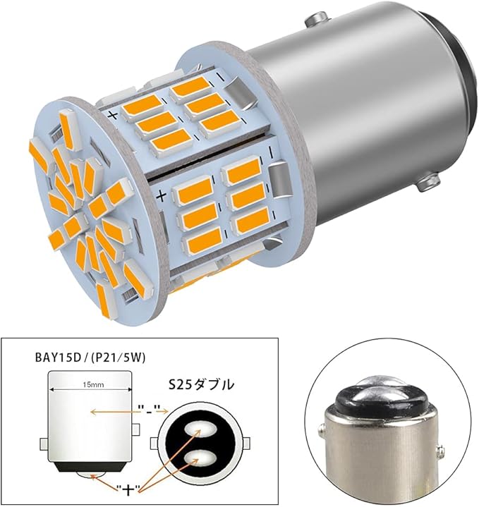 ゴシミ 12V-24V車用 S25 ダブル球 アンバー BAY15D P21/5W LEDバルブ汎用 超高輝度 54連SMD テールライト/ブレーキライト(2個セット)