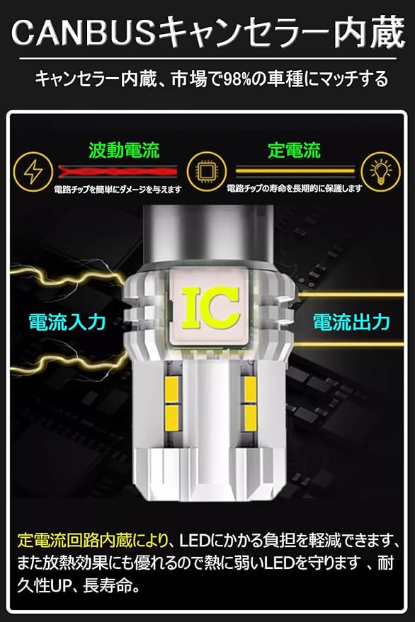 定電流回路 安定性抜群:このs25 ダブル はインテリジェント定電流回路を搭載。車両電圧変化にも影響されずに安定した点灯を持続します。これによりLEDにかかる負荷をおさえ、より長寿命を実現しております。