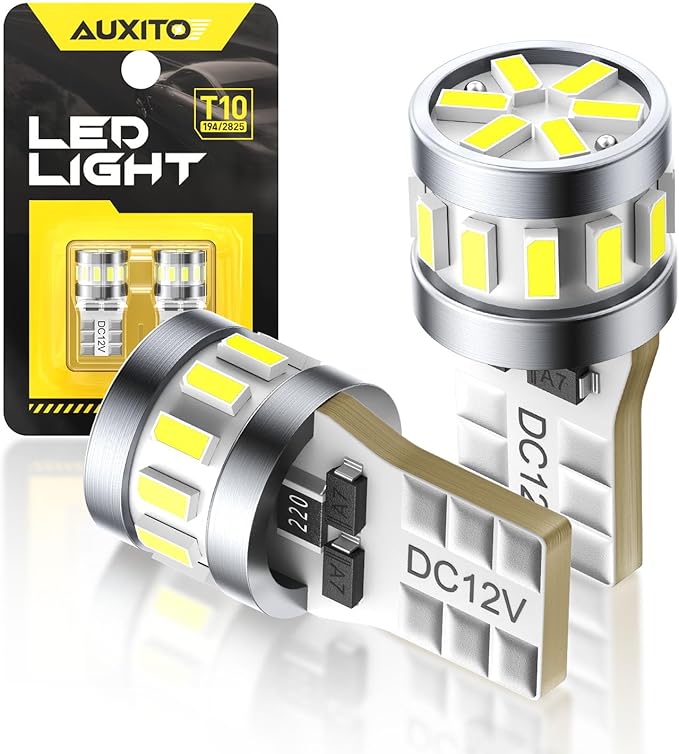 AUXITO T10 led ホワイト 6500K 爆光 led T10 ポジションランプ/ナンバー灯/ルームランプ 18pcs 3014SMDチップ 5倍明るさアップ 360 全方向照射 車検対応 改良ソケット 無極性 キャンセラー内蔵 9-14VDC 2個入