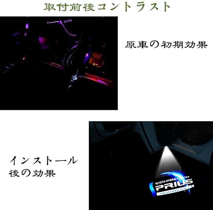 Ltsplay プリウス30系 車用カーテシランプ 工具付 カーテシライト LEDロゴ投影 50系プリウスα ドアウェルカムライト カーテシ 車用ドアランプ 角度調整機能付き 4個セット nz511 zvw30 Prius 4