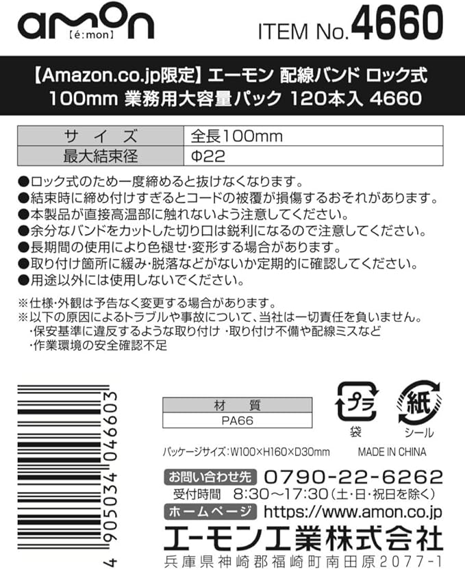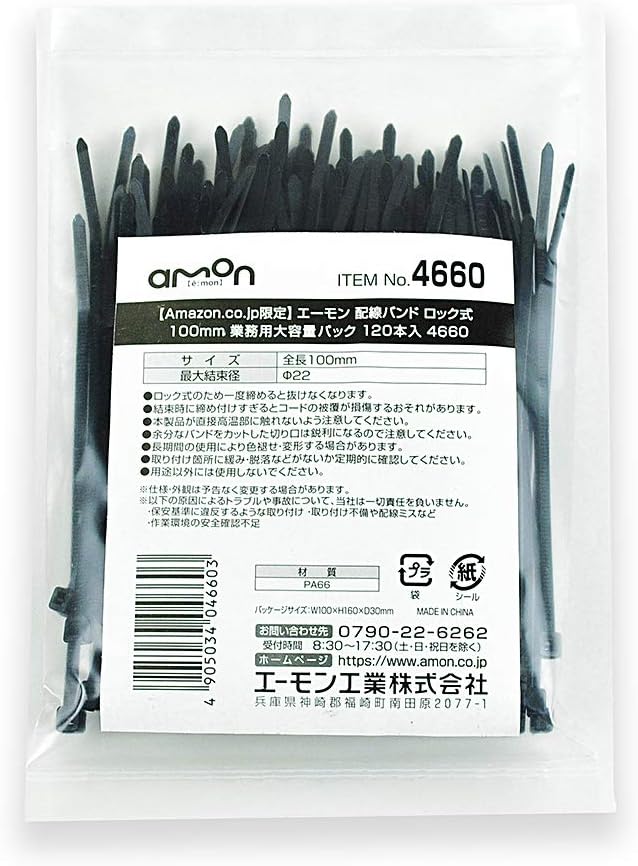 【限定商品】エーモン(amon) 配線バンド ロック式 (自動車用 延長ケーブル コード まとめ用) 100mm 業務用大容量パック 120個入 4660