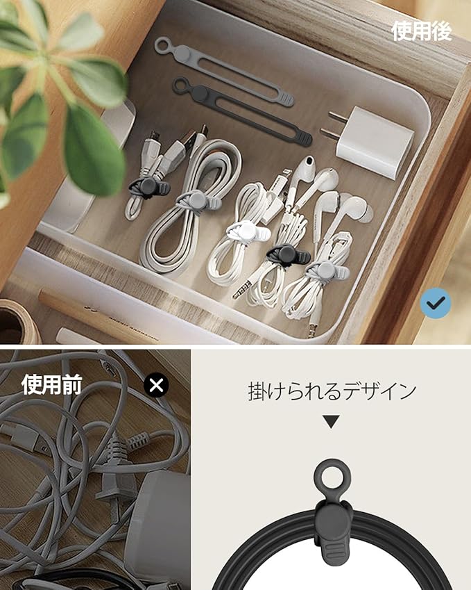 【高品質素材 繰り返し使用可能】柔らかい素材で作られているため周囲のものを傷つけにくく、シリコン製のケーブルバンドなので繰り返し使えます。