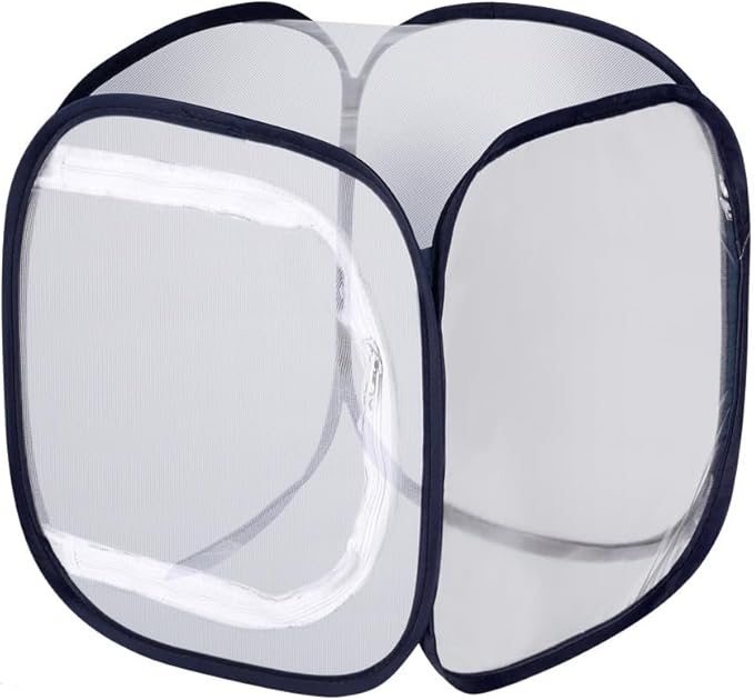 Mikankawa 虫かご 昆虫飼育箱 植物ケージ 折り畳み 通気性あり メッシュ仕様 内部が見える 昆虫観察 蝶 トンボ カイコ (30*30*30cm)