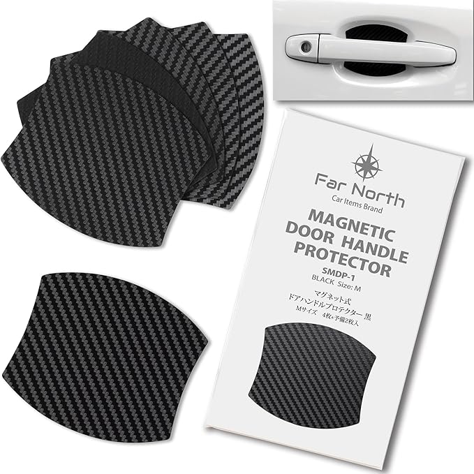 Far North ドアハンドルプロテクター 車用 【マグネット式】 多車種汎用型 車 傷防止 保護 ドアハンドル プロテクター カーボン ドアハンドルプロテクションカバー ドアノブ ガード 引っかき傷 保護フィルム マグネット 4枚+予備2枚入り (黒, Mサイズ 89 79mm)