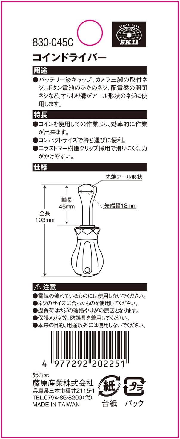 SK11(エスケー11) コインドライバー 先端アール形状 NO.830-045C