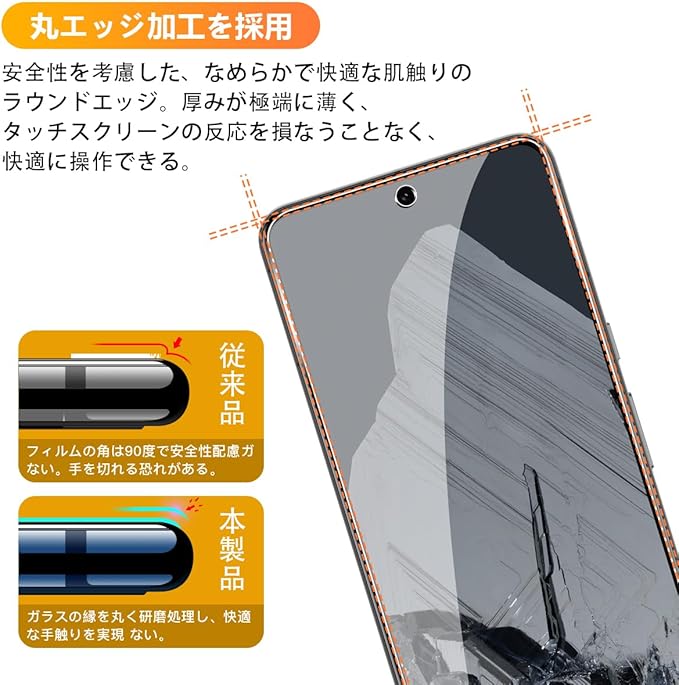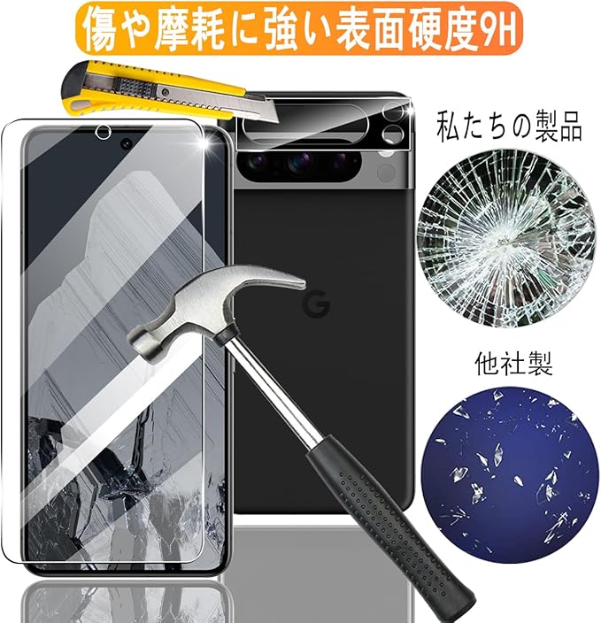 【9H強度&飛散防止】対応 Pixel8 Pro 強化ガラス 保護フィルムは日本旭硝子素材を採用します。 落下、スクラッチ、衝突、衝撃に高い耐久性があります 衝撃を最小限に抑えて画面の破損を抑え。カッターなどの鋭利なものを当たってもキズが付きにくくて高い強度を持ち表面硬度9Hが特徴です。特殊な飛散防止設計により、万一割れてしまった際にも飛散することなく、高い安全性を実現します。