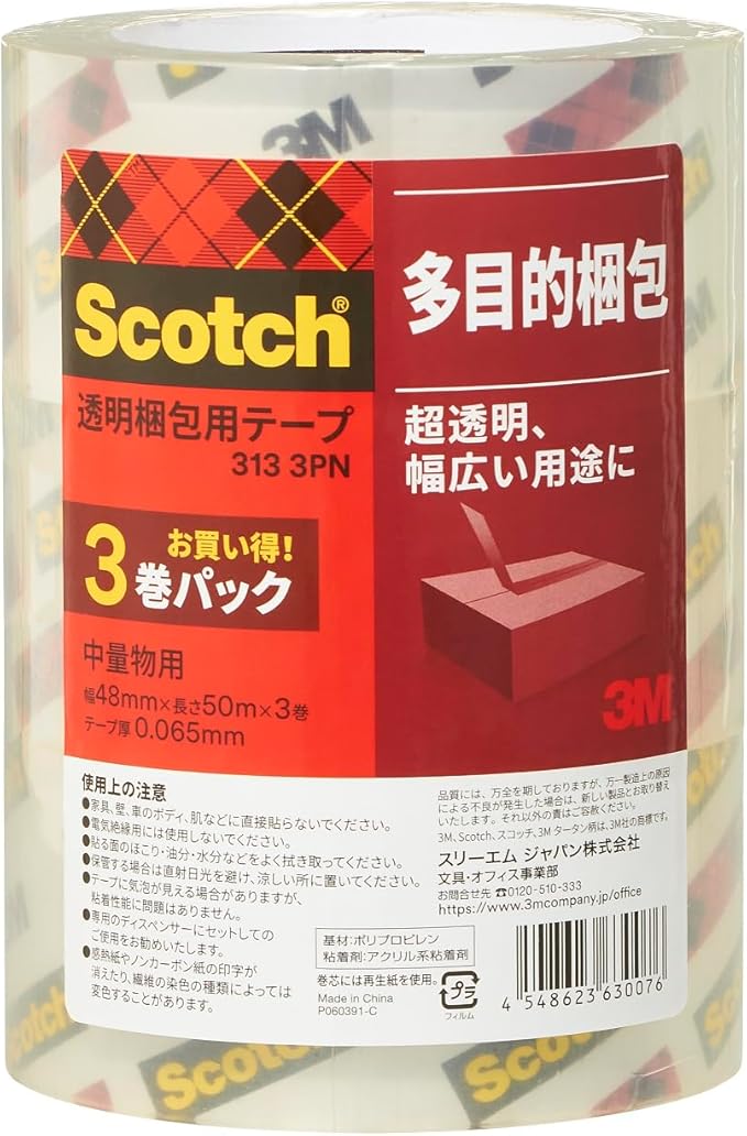 3M スコッチ ガムテープ 梱包テープ 中軽量用 48mm 50m 3巻パック 313 3PN