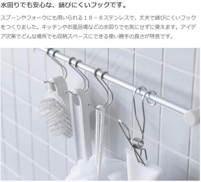 直径7.5mm程度の丸型のバーに掛けられます。アイデア次第であらゆるスペースを収納場所として活用できます。