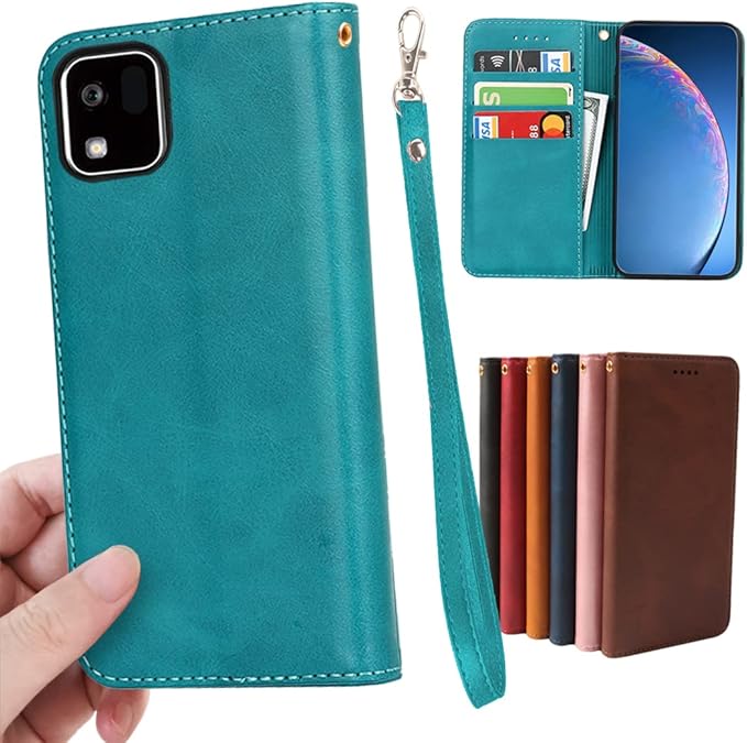 京セラ かんたんスマホ3 A205KC ケース 手帳型 ストラップ 同梱 適用 A205KCケース かんたんスマホ3A205KC 手帳型カバー かんたんスマホ3ケース 簡単スマホ3ケース 手帳 かんたんスマホ3手帳型ケース A205KC case 【GoKIGIoD】 財布型 スマホケース 内蔵マグネット 弱磁 カード収納 ストラップホール スタンド機能 耐衝撃 レトロ ターコイズ