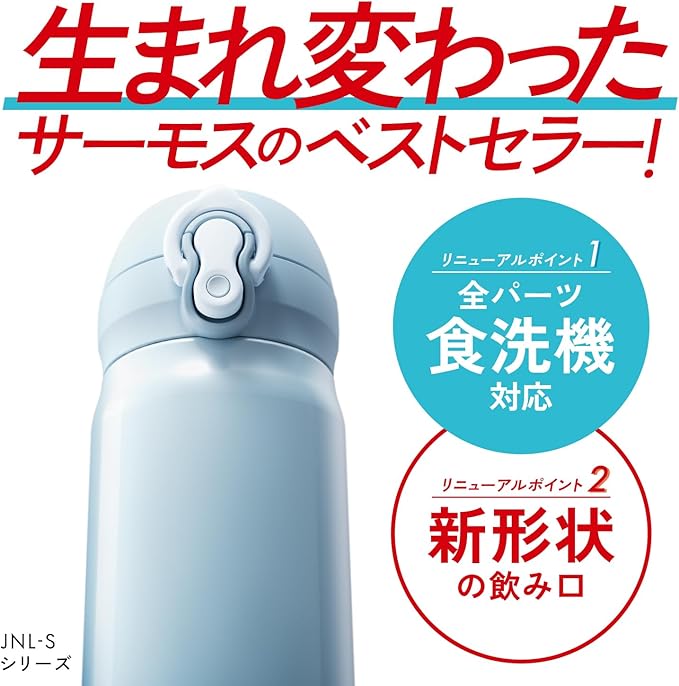 【食洗機対応モデル】 サーモス 水筒 真空断熱ケータイマグ 500ml アイスブルー 飲み口外せてお手入れ簡単 軽量タイプ ワンタッチオープン ステンレス ボトル 保温保冷 JNL-S500 ICB
