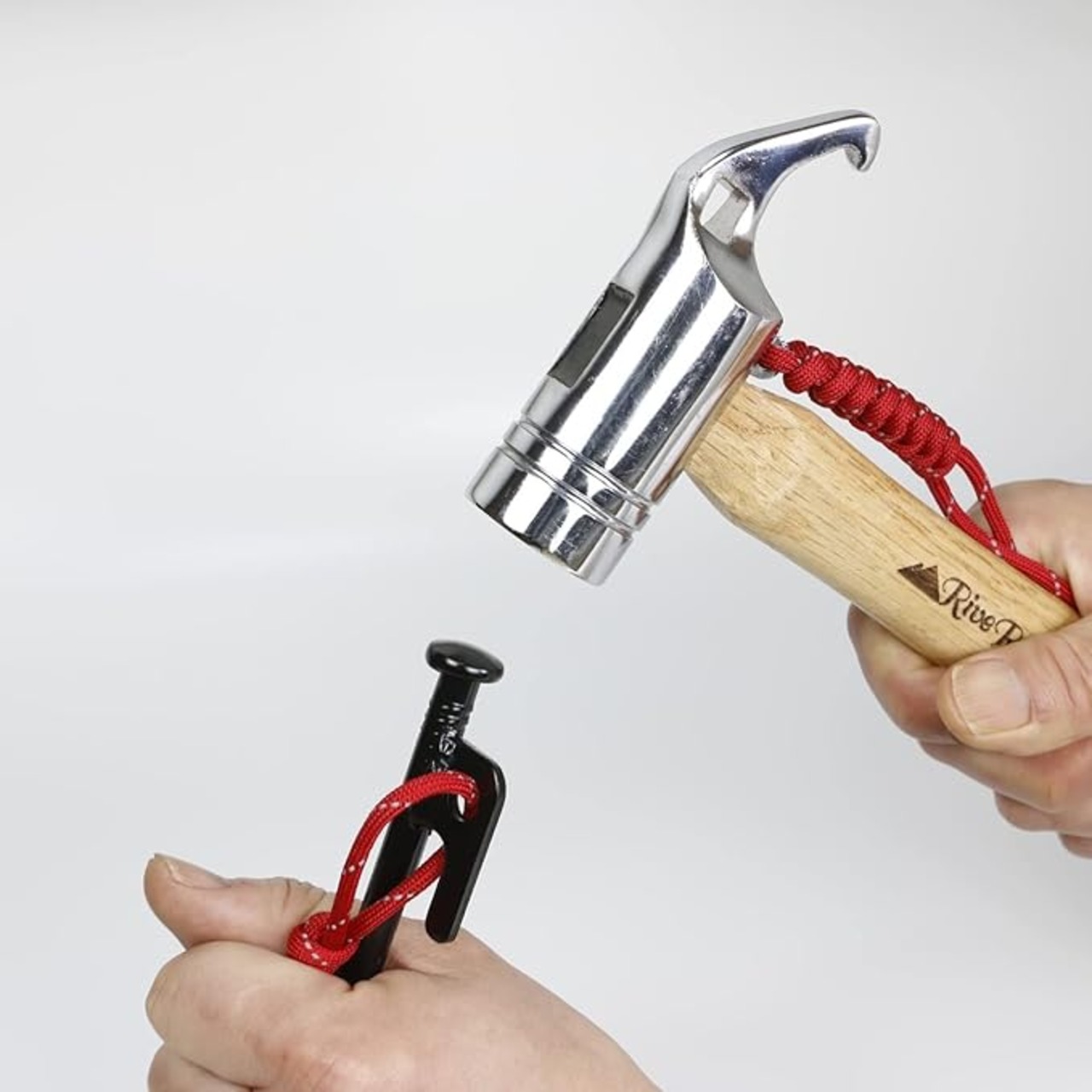 大容量収納バッグでキャンプ道具、ペグハンマー、スチールペグ、ロープ、自在金具などを1つにまとめられます。