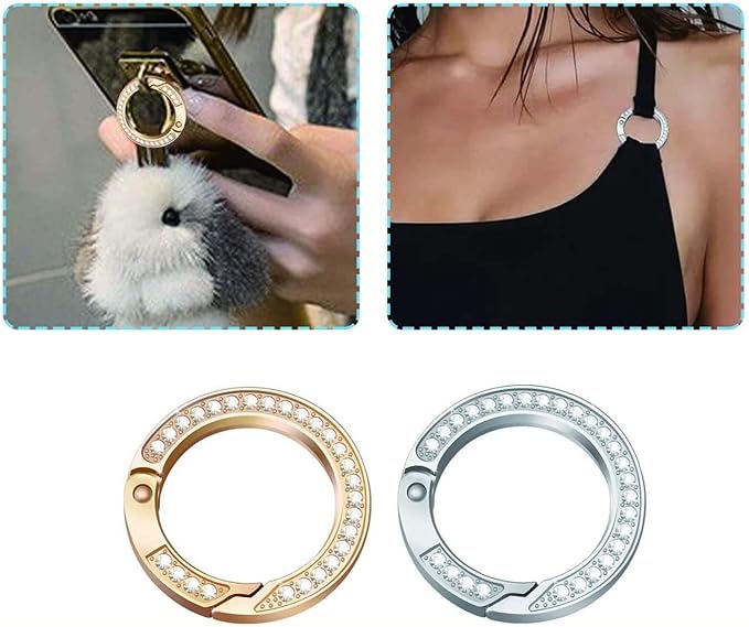 サムコス キーリング おしゃれ カラビナ ラインストーン キラキラ 丸型 カバン飾り 鍵飾り バッグチャーム DIY手作りアクセサリー ジュエリー作り デコキット 人気 レディース 金色+銀色 4個セット