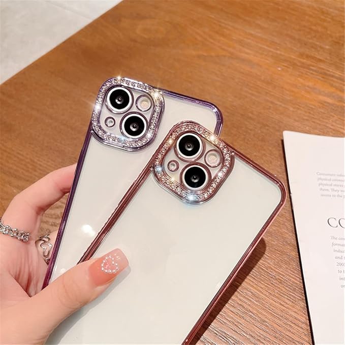 iPhone 14 Proケース 6.1インチ 対応 可愛い キラキラ ラインストーン 背面全透明 薄型 カメラ保護 ソフトケース シンプル 韓国 人気 アイフォン 14 ケース かわいい シリコン 純正 携帯カバー おしゃれ レンズ保護 スマホケース 透明