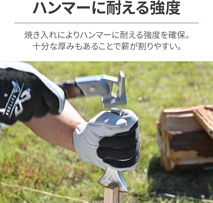 ハンマーに耐えられる強度があり、十分な厚みを確保することで薪が割りやすい。