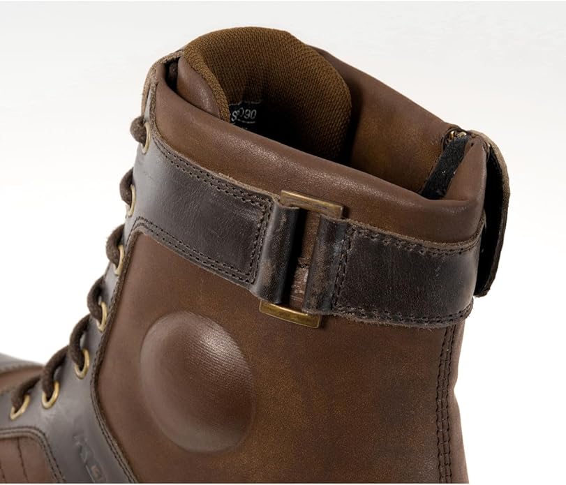 タフなルックスのライディングブーツ。丈夫でお手入れ簡単なマイクロファイバーをメインに使用し、くるぶしのプロテクターや牛革製のシフトパッチも装備。