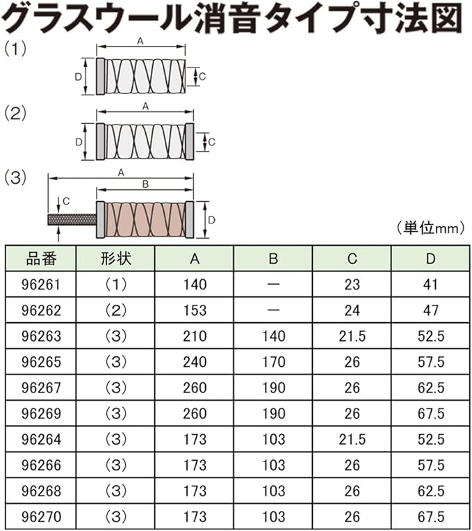 【仕様1】インナーパイプとグラスウールがセットになった一体タイプ