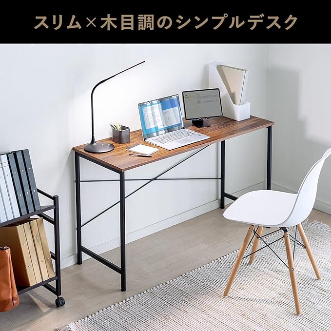 イーサプライ シンプルデスク パソコンデスク スリムデスク 平机 幅120cm 奥行45cm 木目調 ブラウン EZ1-DESKN012