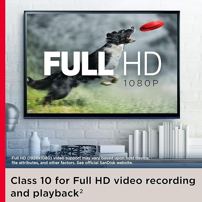 フルHDビデオ録画と再生用のクラス10 (フルHD (1920x1080) ビデオのサポートは、ホストデバイス、ファイル属性、その他の要因によって異なる場合があります。 SanDisk公式ウェブサイトをご覧ください。)