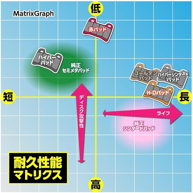 【仕様】摩耗が少なく耐久性に優れています。ブレーキダストも出にくく、汚れにくい仕様です。