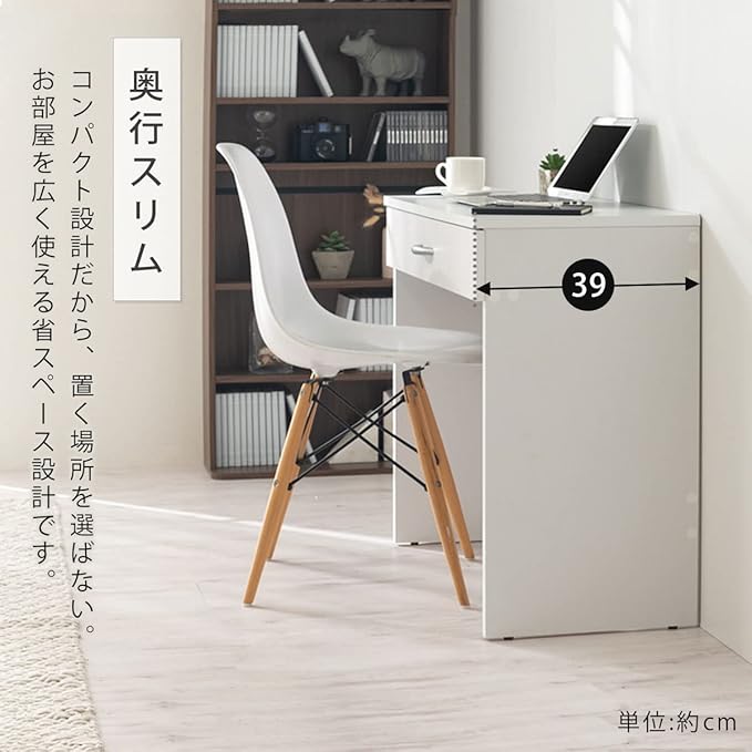 ぼん家具 パソコンデスク コンパクト 引き出し 幅80 奥行39 高さ70.7cm スリム デスク リビング オーク