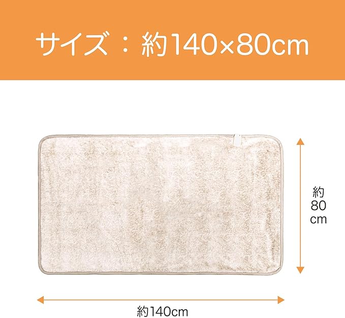 ・コード長(電源側):約1.9m ・コード長(本体側):約0.6m ・頭寒足熱配線:◯ ・ダニ退治:◯ ・水洗いOK:◯ ・室温センサー:○ ・消費電力:50W ・1時間あたり消費電力量(強):約35Wh ・1時間あたり電気代(強/弱):約1.1円/約0.4円 ・材質:(表面)ポリエステル100% / (発熱布)ポリエステル100% ・コントローラー品番:KMC-58 ・本体サイズ:約1400(W) 800(D)mm ・本体質量:約1.2kg