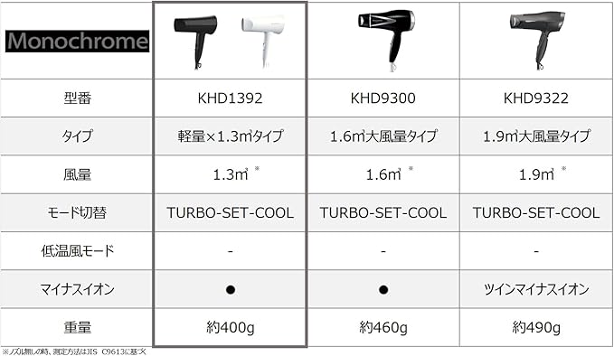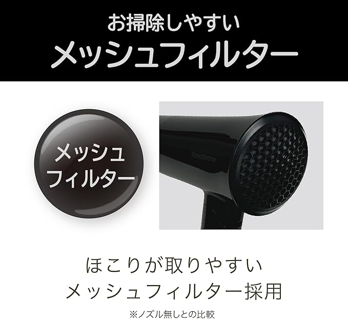 【限定商品】 コイズミ ヘアドライヤー モノクローム 軽量 コンパクト 折りたたみ ミニ マイナスイオン ブラック KHD-1392/BK
