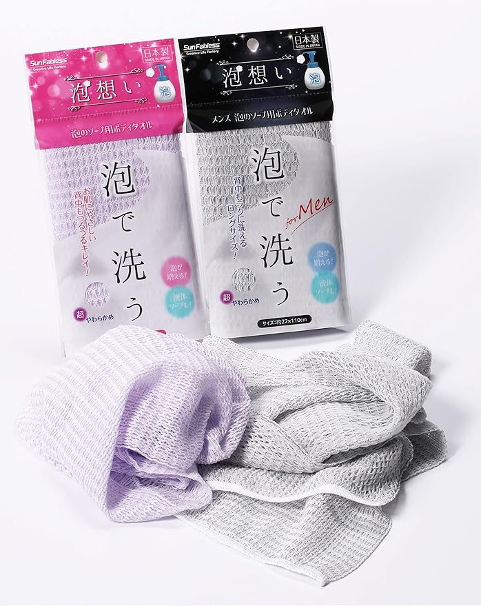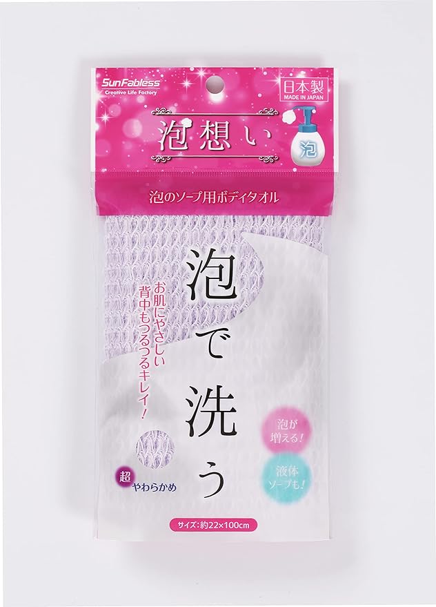 サンファブレス 超やわらかめ 日本製 ボディタオル 泡 ボディソープ 用 タオル 約幅22 長さ100cm パープル 体洗い