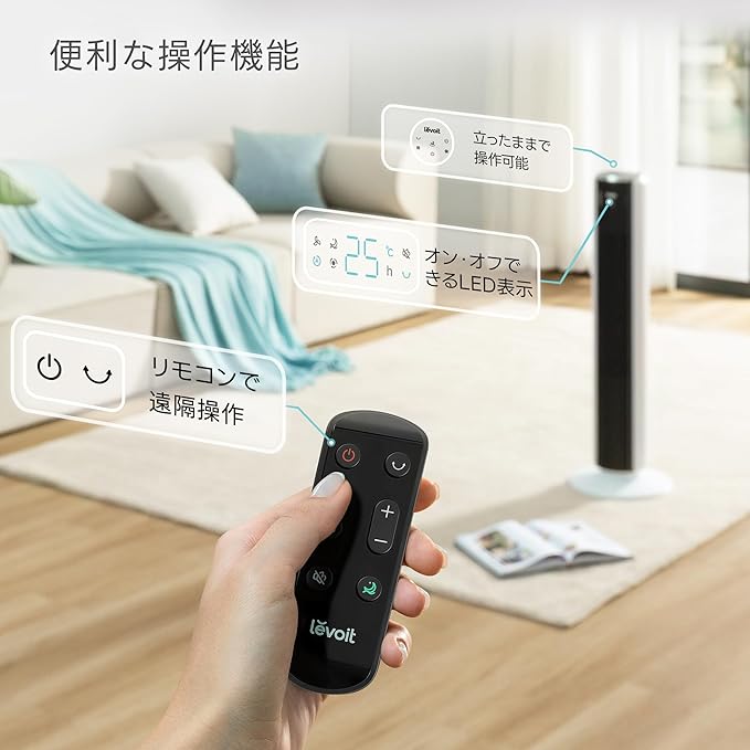 Levoit (レボイト) 扇風機 タワーファン 静音 羽なし 送風機 左右90 自動首振り 温度センサー付き 自動風量調節 12時間タイマー リモコン付き 7.5m/s リビング/寝室 縦型 スリム LTF-F361-WJP