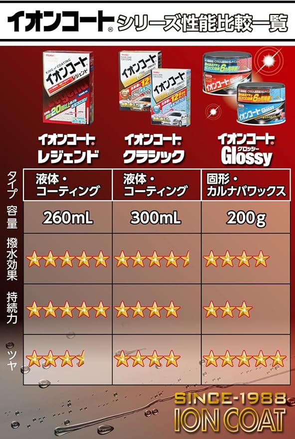 ●高純度カルナバワックスと新たに配合したイオン配向レジンマジックで固形ワックスの艶と撥水耐久性を両立 ●当社耐久撥水テストによる当社製固形型ワックス最長の6カ月にパワーアップ
