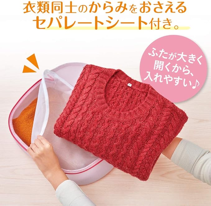 ●2着を区切れるセパレートシートが付いているので、ネット内の衣類同士のからみや摩擦をおさえます。