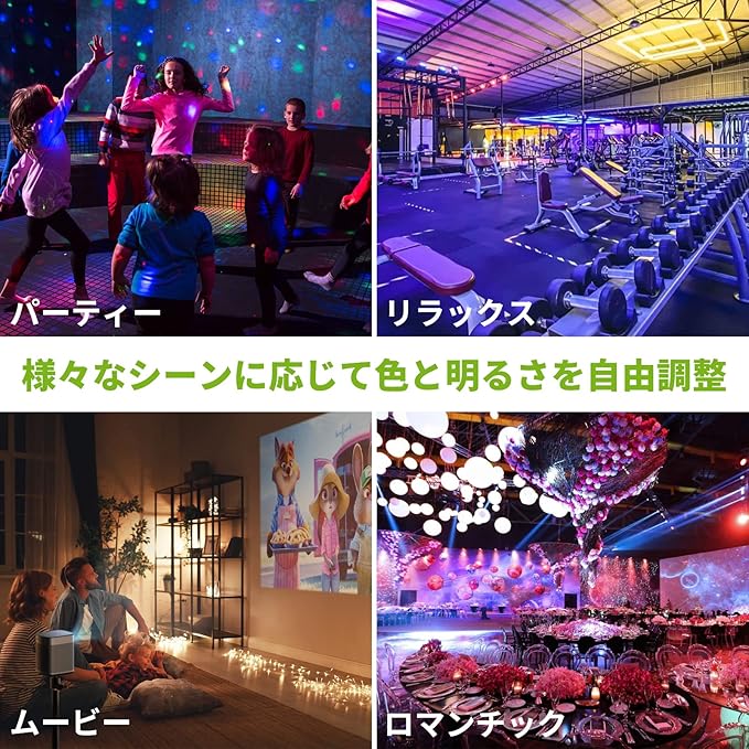 【調光調色】この電球は16色の選択と4段階の輝度調整が可能です。それにより、日常生活に様々なシーンで、違う気持ちに応じて色と明るさを自由かつ簡単に調整することができます。豊富な色彩が異なる雰囲気を醸し出します。