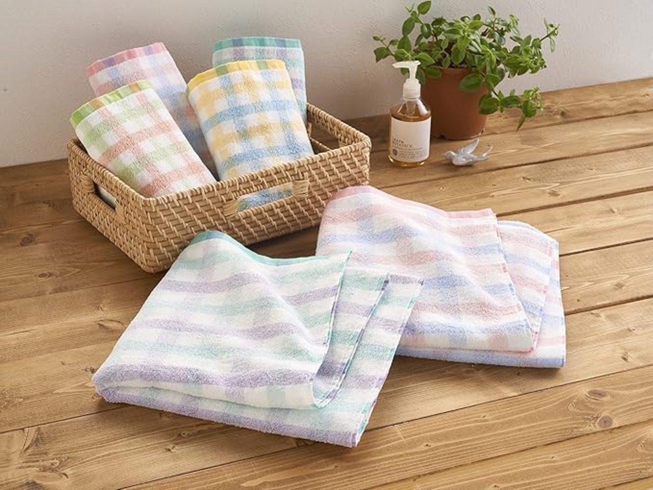 ・使いはじめは遊び毛(毛羽)の脱毛がございます。また柔軟剤のご使用は、吸水性が悪くなったり、毛羽落ちの原因となりますのでご注意ください。