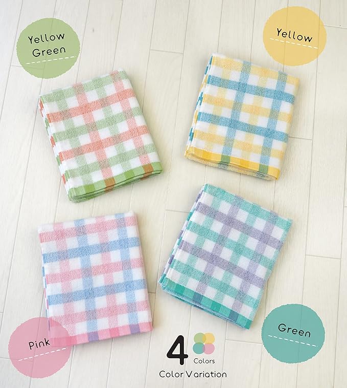 Kosugizen フェイスタオル やわらかファインチェック 4色各1枚入 34 80㎝ しなやかな肌触り 細番手パイル使用 4枚セット SV-2316-4