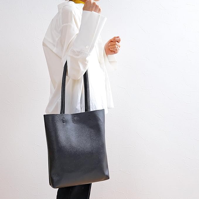 シンプルなデザイン&エコレザーで軽くて使いやすい縦型のトートバッグです