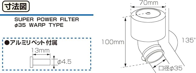 キタコ(KITACO) スーパーパワーフィルター(φ35/ワープ45 ) モンキー(MONKEY)/ゴリラ/エイプ50/エイプ100等 ブルーアルマイト 515-0700350