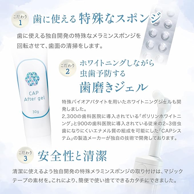 ■セット内容 *Miracle Whitening(単4電池2本使用) *専用歯磨きジェル 30g *メラミンスポンジ 1シート(10個入り)