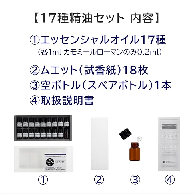 アロマ検定3点セット 1級・2級対象主要17種精油セット + AEAJ公式テキスト + AEAJ公式問題集(※第52回アロマテラピー検定より、香りテストの出題は実施されませんのでご注意ください)