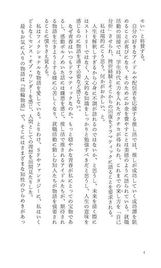 だから、私はこれから、物語に対抗したいと思う。何かしらの物語が私たちの幸福を奪うのだとしたら、もはやそんな物語は廃棄されるべきだろう。私はよき物語を愛している。それゆえ、物語を批判したいと思う。愛するということは、支配されるわけでもなく、支配するわけでもなく、独特のバランスのなかで惹かれ合い、反発し合うことなのだと考えている。