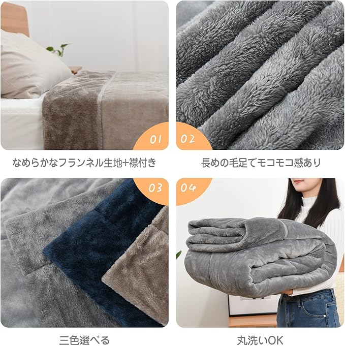 カラー:グレー | サイズ:シングル・140X200cm 【2枚の毛布で中綿をはさむ、あったか三層構造】なめらかな肌触りのフランネル毛布で吸湿発熱中綿を挟んでいるので、1枚の毛布より抜群の温かさを実感できます。衿付きなので首元もふんわりあったか。布団の外から冷たい空気が入ってくるのを防いで中の温かい空気を逃さないです。