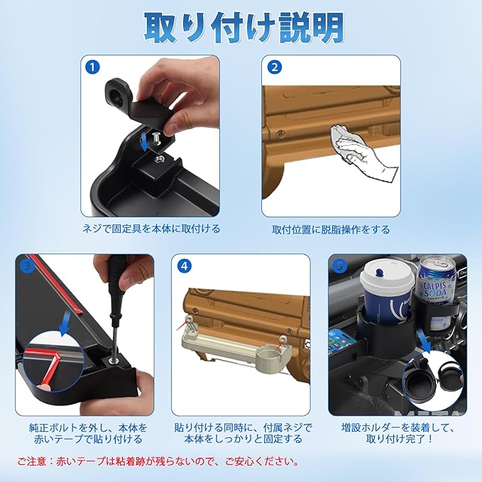 4.【フィッティング確認済】製作に当たり実車にて幾度もフィッティング確認を行い仕上げたスズキ ジムニー専用設計モデルになります。シュースやコーヒーを飲みながら、楽しいドライブに大活躍間違い無しです!