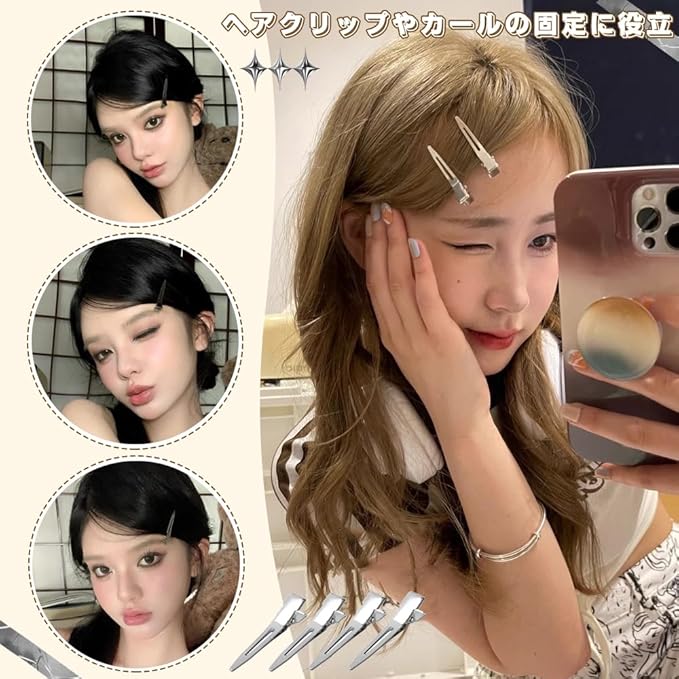 ヘアクリップ プロ用 メタルダックビルヘアクリップ 約50個セット ヘアピン ワニクリップ ステンレス 前髪 散髪 スタイリング 髪留め ステンレス クリップ 跡がつかない 美容師 業務用 長さ4.5cm(シルバー)