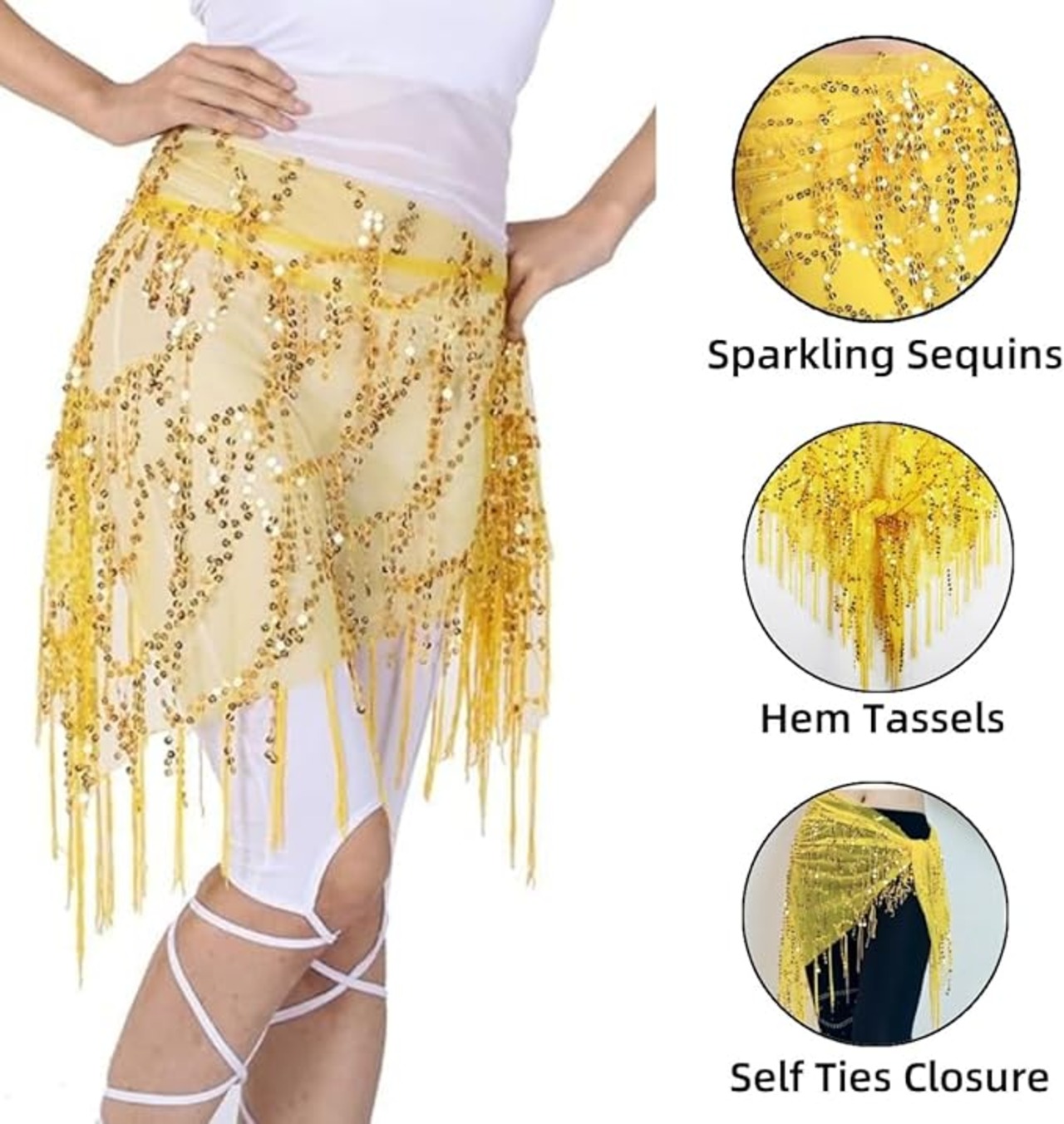 [Getrays] レディース スパンコール タッセル スカート、グリッター フリンジ ベリーダンス ウエスト ヒップ スカーフ、ハロウィン レイブ パーティー コスチューム用レースアップ タンゴ ダンス スカート
